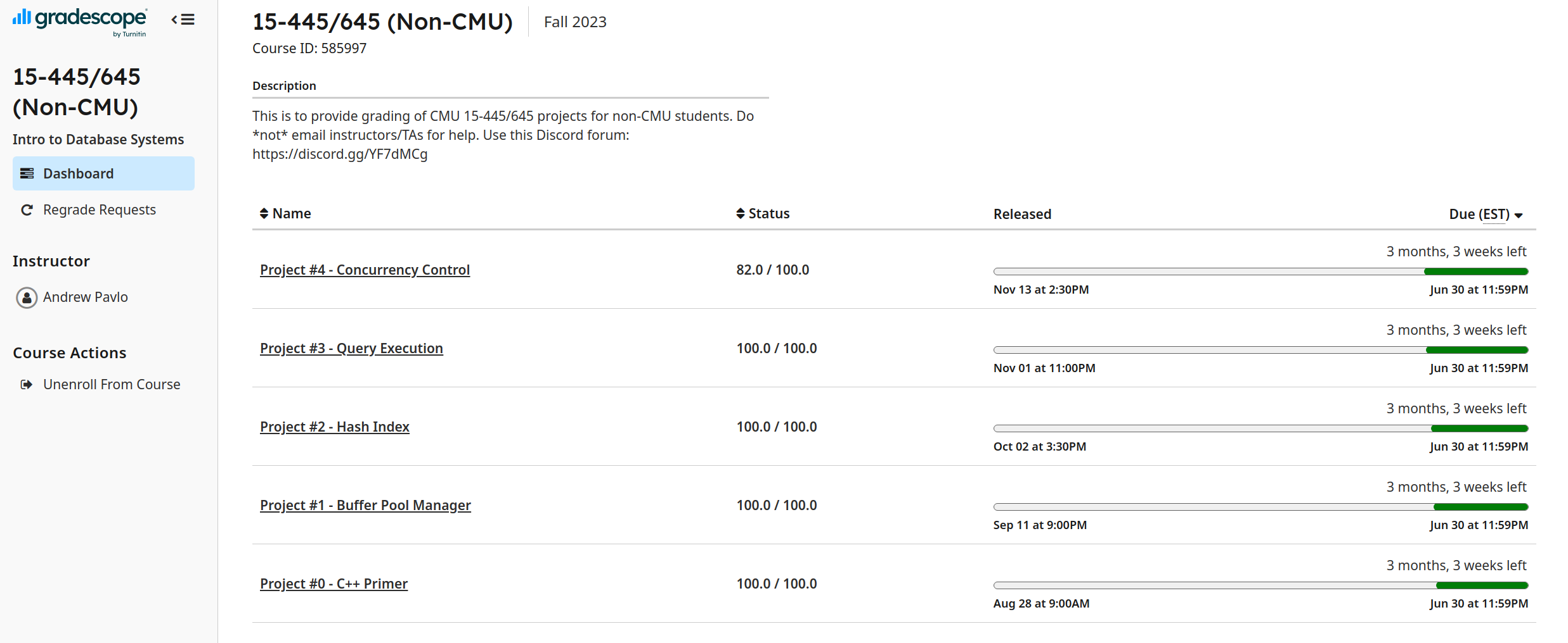 Thank you! Andy Pavlo & Jignesh Patel for the great course!